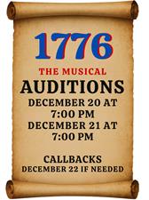 AUDITION DATES: December 20th and 21st at 7 PM with possible call backs on December 22nd at 7:00 PM.